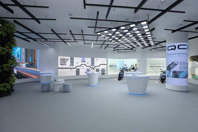 The Product Display Zone showcases Honda’s latest electric offerings in India – the ACTIVA e: and QC1. Visitors can get up close with these models, explore their features, and understand the engineering that powers them. For families and younger visitors, the Kids Interaction Zone offers engaging experiences. This section has been specially designed to make the store welcoming to all age groups, reflecting Honda’s inclusive brand philosophy.