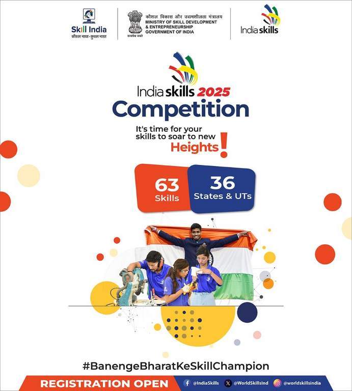 NEW DELHI: The stage is set and the spotlight is on India’s next generation of skill champions as registrations begin for the IndiaSkills Competition (ISC) 2025, the country’s premier platform to celebrate excellence in vocational training and skill development. The Ministry of Skill Development and Entrepreneurship (MSDE), Government of India, today opened the registration link for ISC 2025. The competition will feature 63 skills for which participants from all 36 states and UTs will compete. Registrations can be completed online via the Skill India Digital Hub (SIDH) portal. The last date to complete the registration is 30 September 2025.