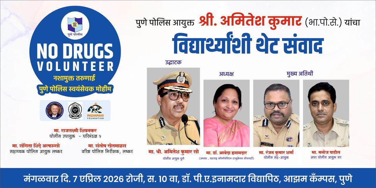 Pune Police Commissioner Amitesh Kumar said, “The fight against drugs cannot be won by enforcement alone. It requires trust, awareness and active participation from the community, especially the youth. Through the No Drugs Volunteer initiative, our vision is to create a people-supported movement in which students become partners in prevention and ambassadors of a healthier, safer and drug-free Pune.”
