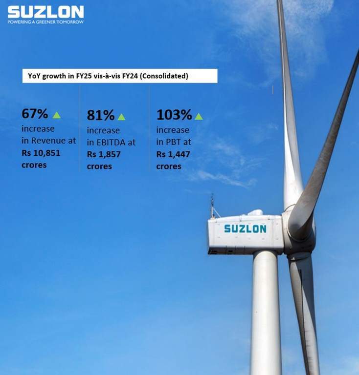 INDIA: Suzlon Group, India’s No.1 Wind Energy Solutions provider, announced its fourth quarter (Q4 FY25) and annual audited results for the financial year 2024-25 (FY25).
