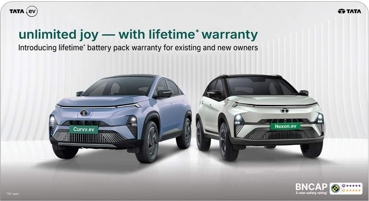 Talking about the benefit of Lifetime HV Battery Warranty to the customer, Vivek Srivatsa, Chief Commercial Officer, Tata Passenger Electric Mobility Ltd., said, “By democratising premium EV technology, we have played a significant role in advancing India’s EV category’s exponential growth. One of the key factors behind this growth is the ability to instill confidence amongst customers for a worry-free ownership experience. Today, we are proud to extend this feeling even further with the introduction of the Lifetime HV Battery Warranty solution for all customers of the Curvv.ev and Nexon.ev 45 kWh. By offering this unprecedented assurance, we are enabling a truly carefree, future-ready ownership journey for every TATA.ev buyer.”